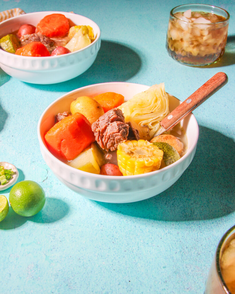 This cocido recipe has nourished my family for five generations. I make it with slow-simmered bone-in beef and lots of vegetables, creating a flavorful broth that warms the heart and heals the soul.